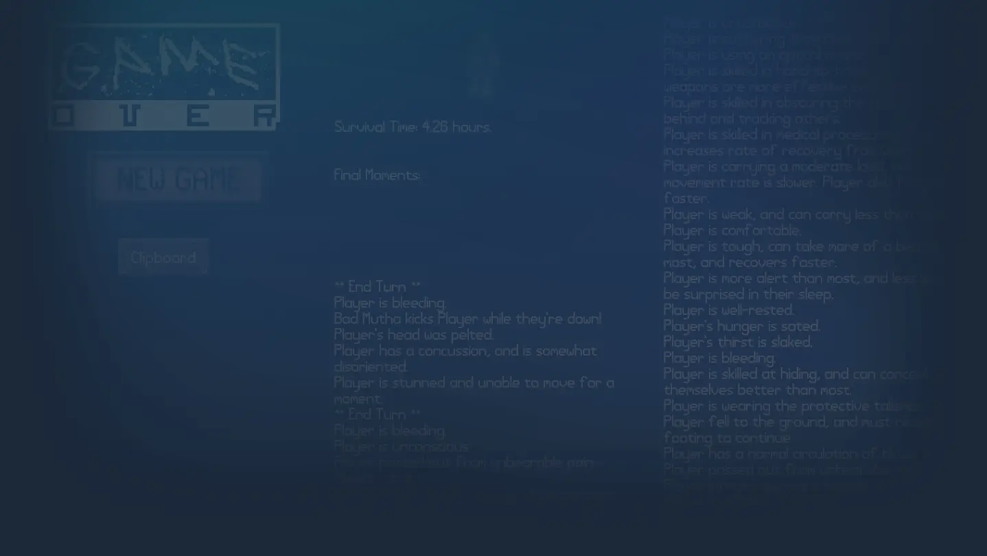 NEO Scavenger is a survival game set in a post-apocalyptic Michigan where you must scavenge for supplies and uncover your identity. Each turn, you mak…